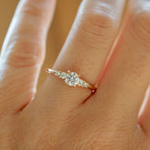 Ring KYLIE fällt Dank des Vintage-inspirierten Designs direkt ins Auge. Ein einzigartiger Diamant im Brillantschliff, direkt in der Mitte des Ringes, wird begleitet von vier weiteren Brillanten auf der Ringschiene. Der Ring liegt leicht und bequem am Finger. Die Ringschiene ist glänzend poliert.