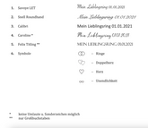 Die voraussichtliche Anfertigungszeit kann der Produktseite entnommen werden. Wir versenden mit DHL oder alternativ mit unseren langjährigen, persönlichen Kurier-Partnern. Die Lieferung ist komplett versichert und kostenfrei. I.d.R. beträgt die Lieferzeit je nach Lieferort 1 - 3 Tage (DE + EU) bzw. 3 - 7 Tage (Nicht EU und International) Nach Terminabsprache können die Ringe auch direkt in unserem Atelier abgeholt werden.
