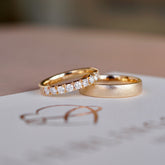 Halb = Bei Ringgröße 50 ist dieser Ring bis ca. zur Hälfte mit Diamanten besetzt.