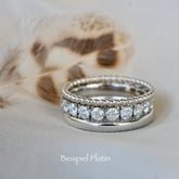 Die besonders detailliert und offen gestalteten Vier-Krappen-Fassungen, sorgen für ein strahlendes Funkeln der Steine und sind überall soft abgerundet, für einen hohen Tragekomfort. Er passt wunderbar an jeden Finger der Hand und wird dich ein Leben lang begeistern, da das Design einfach zeitlos ist. Bis ca. zur Hälfte sind insgesamt 11 Diamanten eingefasst, die andere Hälfte ist glänzend poliert.