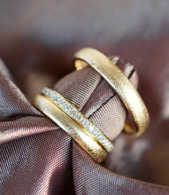 Diese Vintage-inspirierten Eheringe beeindrucken durch perfekten Tragekomfort und einer einzigartigen Oberfläche, die über kreuz gebürstet wird. Sie dient der Verzierung und macht die Ringe gleichzeitig widerstandsfähig gegenüber äußerer Einflüsse. Beide Ringe sind im Profil leicht abgerundet.