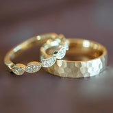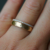 Der Damenring STRUKTURA wird in traditioneller Goldschmiedekunst geschmiedet und gehämmert, um diese besondere Oberfläche zu erzielen. Dank dieser einzigartigen Bearbeitung ist der Ring sehr widerstandsfähig gegenüber äußeren Einflüssen und behält lange seine schöne Optik. Der Ring ist innen & außen minimal abgerundet und sehr angenehm zu tragen.